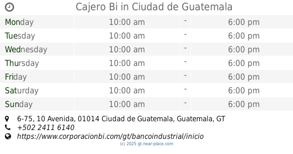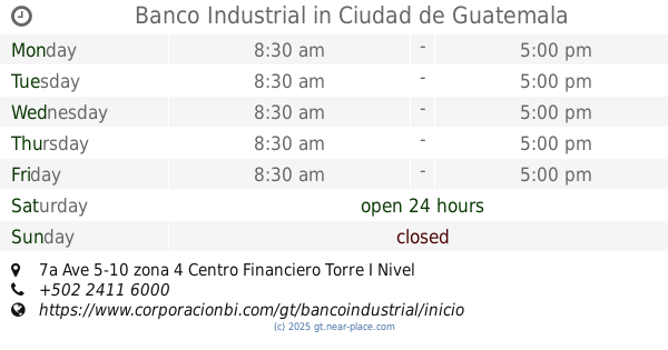 7a Ave 5-10 zona 4 Centro Financiero Torre I Nivel 1 Guatemala Agencia Central Guatemala