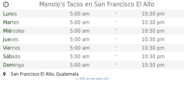 | Martes | abierto 24 horas | |||||